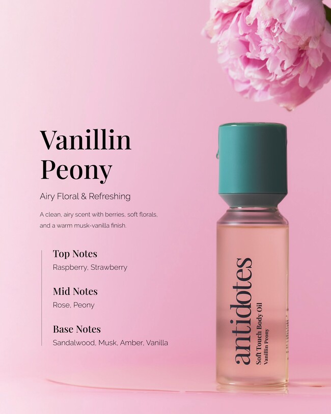 Antidotes Soft Touch Body Oil ใช้ได้ทั้งตอนเช้าและก่อนนอน ช่วยล็อกความชุ่มชื้น ให้ผิวเนียนนุ่มแบบซาติน พร้อมกลิ่นหอมชัดเจน ให้ทุกความใกล้ มั่นใจ หอมชัด สะกดทุกสัมผัส เหมาะกับทุกสภาพผิว โดยเฉพาะคนที่ใส่ใจการดูแลตัวเองหลังวันหนัก ๆ หรือชอบเติมบุคลิกก่อนออกจากบ้านในตอนเช้า ทุกกลิ่นมีให้เลือก 2 ขนาด ได้แก่ 100 ML ราคา 980 บาท และ 30 ML ราคา 350 บาท วางจำหน่ายที่ Antidotes สาขา Central World, ICONSIAM, Siam Discovery, Pop-Up Central Park และช่องทางออนไลน์ของแบรนด์ทุกช่องทาง
