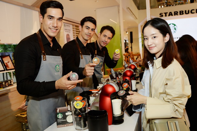 งานเปิดตัวอย่างเป็นทางการของ ผลิตภัณฑ์แคปซูลกาแฟสดระดับพรีเมี่ยมสตาร์บัคส์ใหม่ นำโดยนายวิคเตอร์ เซียห์ ประธานกรรมการและประธานคณะผู้บริหาร เนสท์เล่ อินโดไชน่า พร้อมด้วยนายโจโจ้ เดลา ครูซ ผู้อำนวยการบริหารธุรกิจผลิตภัณฑ์กาแฟและครีมเทียม บริษัท เนสท์เล่ (ไทย) จำกัด นายคิม-อังเดร นอร์ดบี้ ผู้จัดการกลุ่มผลิตภัณฑ์กาแฟระดับภูมิภาคในโซนเอเชีย โอเชียเนีย และแอฟริกา บริษัท เนสท์เล่ นางไอลีน เพิร์ล พอนซ์ ผู้อำนวยการบริหารธุรกิจเครื่องชงกาแฟเนสกาแฟ ดอลเช่ กุสโต้และสตาร์บัคส์ บริษัท เนสท์เล่ (ไทย) จำกัด นางสาววรณัน นครชัย ผู้จัดการผลิตภัณฑ์อาวุโส เครื่องชงกาแฟแคปซูลเนสกาแฟ ดอลเช่ กุสโต้และสตาร์บัคส์ บริษัท เนสท์เล่ (ไทย) จำกัด และนายสุวสิต วิทยวิจักษณ์ กรรมการผู้จัดการ บริษัท กรุ๊ป เอสอีบี (ประเทศไทย) จำกัด โดยมีนักแสดงซูเปอร์สตาร์ คิมเบอร์ลี่ แอน เทียมศิริ พร้อมด้วยเหล่าเซเลบริตี้ชั้นแนวหน้า อาทิ พลอยพยัพ ศรีกาญจนา ณัฐภา กมลเศวตกุล กมลพร วงศ์รักมิตร มล. กอกฤษต กฤดากร และกันต์ รตนาภรณ์