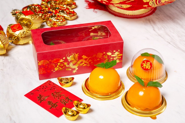 โดยชาวจีน หรือคนไทยเชื้อสายจีนเชื่อว่าส้มคือผลไม้มงคล ซึ่งส้มในภาษาจีนคือ “ไต้กิก” มีความหมายว่า เฮงๆ รวยๆ โดยหัวหน้าพาสทรี้เชฟ ได้บรรจงคัดสรรส้มคุณภาพดี พร้อมวัถตุดิบที่มีคุณภาพ นำมารังสรรค์ออกมาเป็นเค้กส้ม ที่มีส่วนผสมวานิลลา เนื้อนุ่ม สีผิวเหลืองเหมือนทองดุจดั่งทองคำเงางามสว่างสดใส เหมาะแก่การมอบเป็นของขวัญรับเทศกาลตรุษจีนปีนี้ เค้กส้มมงคล 1 กล่อง มี 2 ชิ้น มาพร้อมกล่อง สวยงาม ในราคา 388 บาท++