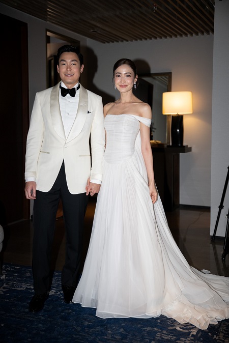 โดยหนึ่งในชุดสำคัญของงานแต่งครั้งนี้ นักแสดงคนดังแต้ว-ณฐพร ปรากฏตัวในลุคเจ้าสาวสวยสง่า ด้วยแบรนด์ไทยดีไซเนอร์ชื่อดังอย่าง White Asava ของ หมู-พลพัฒน์ อัศวะประภา ที่มาร่วมออกแบบชุดแต่งงานให้ในครั้งนี้ ซึ่งความพิเศษของชุดสร้างสรรค์และตัดเย็บจากผ้าไหมชีฟองด้วยเทคนิคการจับพลีทจนเกิดวอลลุ่มสบายตา ชวนฝัน แต่ยังคงสง่างามอยู่เหนือกาลเวลา